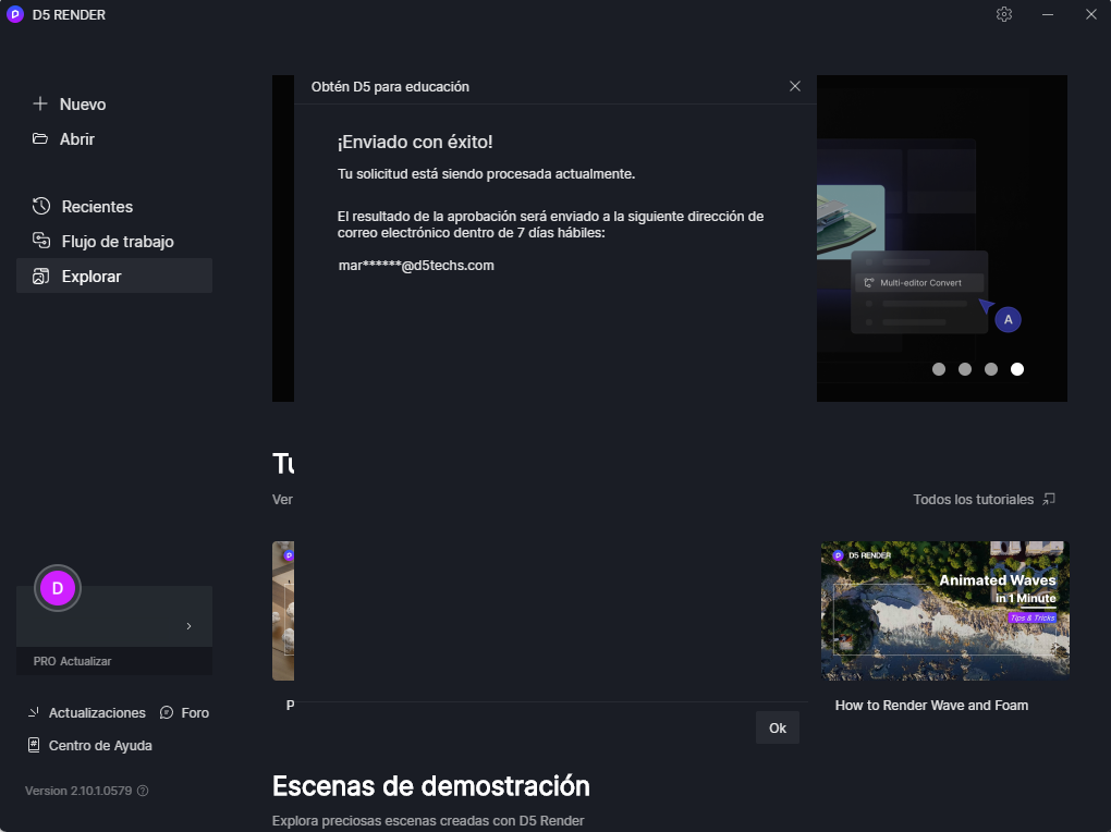 D5 para Educación ahora permite la autogestión del proceso de solicitud a través del cliente de D5 (versión 2.7 o superior), y la revisión se completará dentro de un plazo de 7 días hábiles.