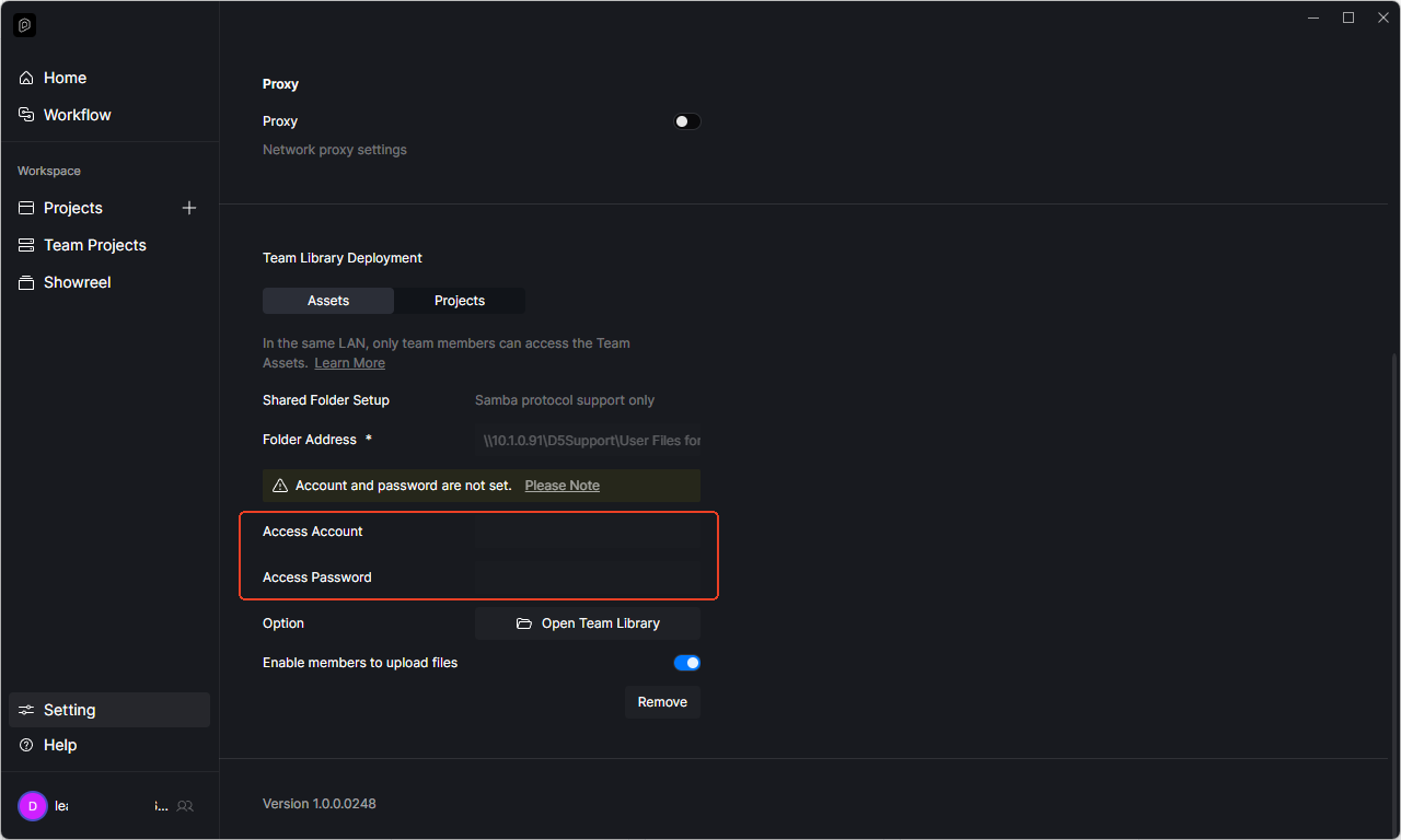 4\. When the local machine or other devices are not on the same local network, they cannot access the team library.
