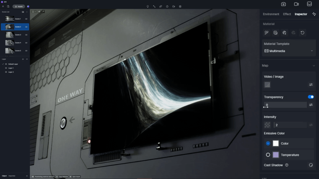 > In addition to adding video assets to **display devices such as TVs and computers in a scene**, they can also **achieve effects like breathing lights and changing LED lights** through the use of video assets.