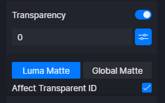 * Affect Transparent ID controls whether the transparent video appears in Transparent Channel Map or not, facilitating post-processing.